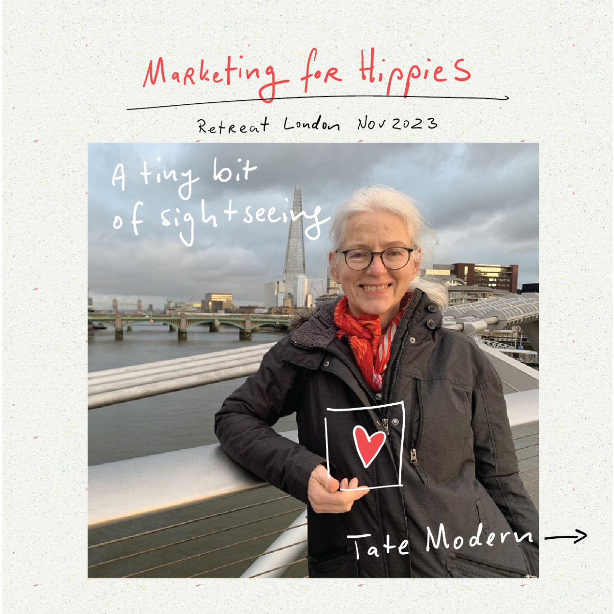 When I read that the wonderful business coach Tad Hargrave offered a 4-day “Marketing for Hippies” retreat in London, I signed up on a whim. After what felt like years of not leaving the house, it was quite a journey London was big and bustling, and very colorful. (My AirBnb was almost on Brick Lane)…