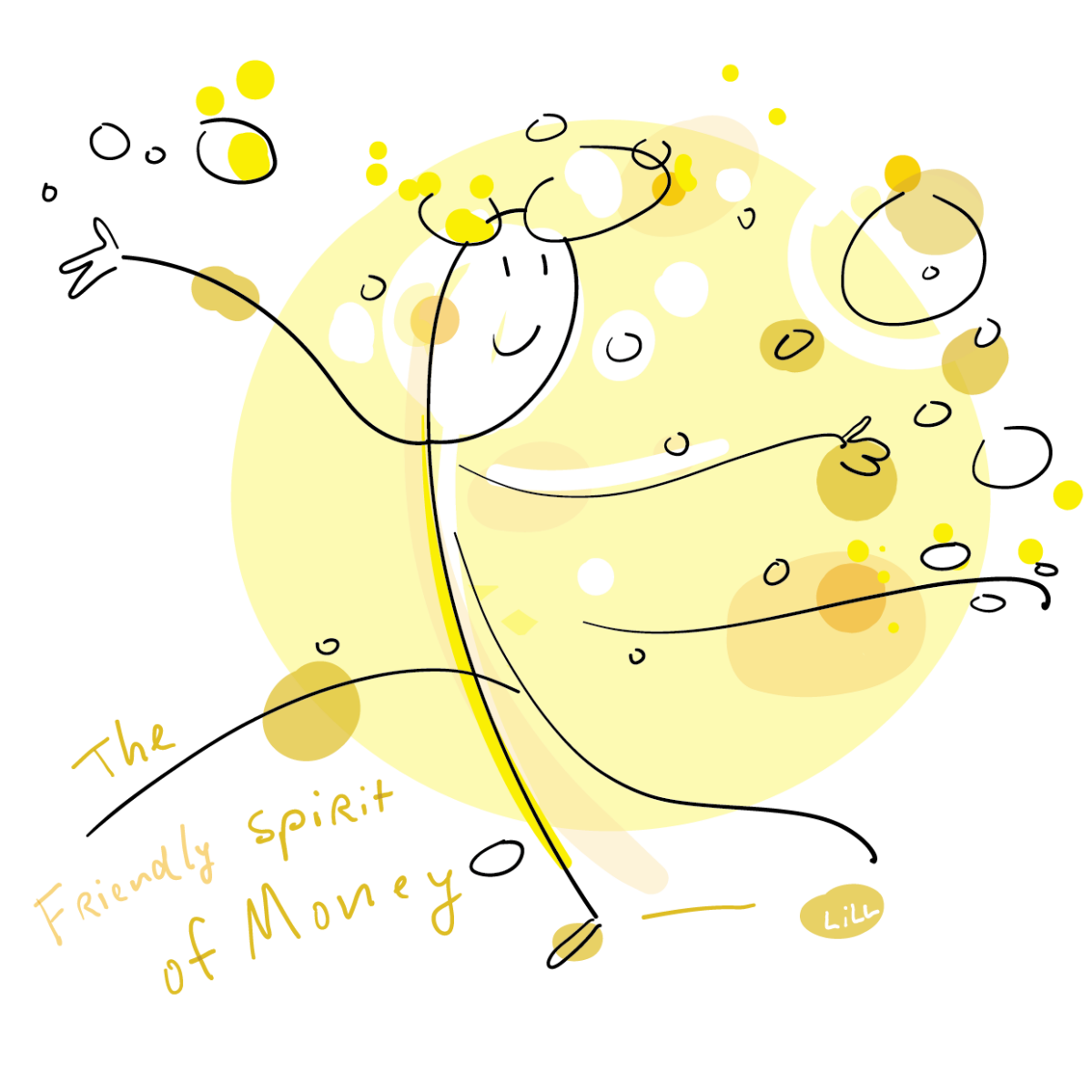 Friendly Money Magic Book tip: “Love Money, Money Loves You”, by Sarah McCrum, was recommended to me. Disclaimer: I didn’t get far into it before I got inspired to illustrate. But I’ll read it! Here is the first paragraph, where “Money” is speaking: “I would like to tell you to love me. Smile at me. Collect…