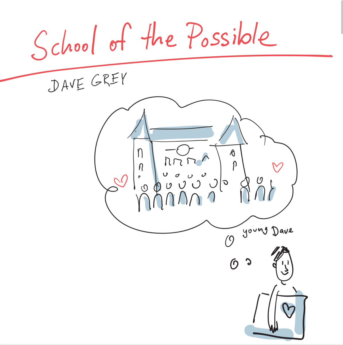 Dave is a “possibilitarian” and pioneer in visual thinking. After a long and successful career he asked himself “What is the next thing that is possible in my life?” I am sketching his inspiring story from becoming an artist, creating and growing business, to launching the “School of the Possible” while we talk. The School…